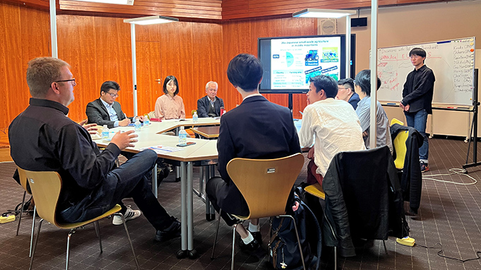 また、翌日4月28日には科学技術講演会で講演いただいたベルンハルト教授をはじめ、京都大学大学院農学研究科の近藤直教授とその学生8名でディスカッションが行われました。