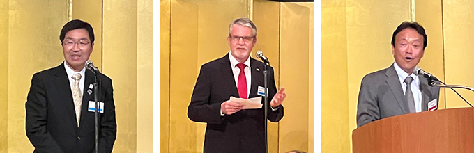 懇親会では、長浜市長の浅見様から乾杯のご挨拶をいただき、その後、6月で退任される大阪・神戸ドイツ連邦共和国総領事のマルティン・エバーツ様より山岡記念財団の日独学術文化交流に寄与する活動への御礼や山岡孫吉翁が寄贈されたドイツ大使館公邸の庭に所在する釣鐘に彫られた「音は消えるが、ハーモニーは残る」と言うゲーテの言葉をご紹介頂くなど心のこもったスピーチをいただきました。