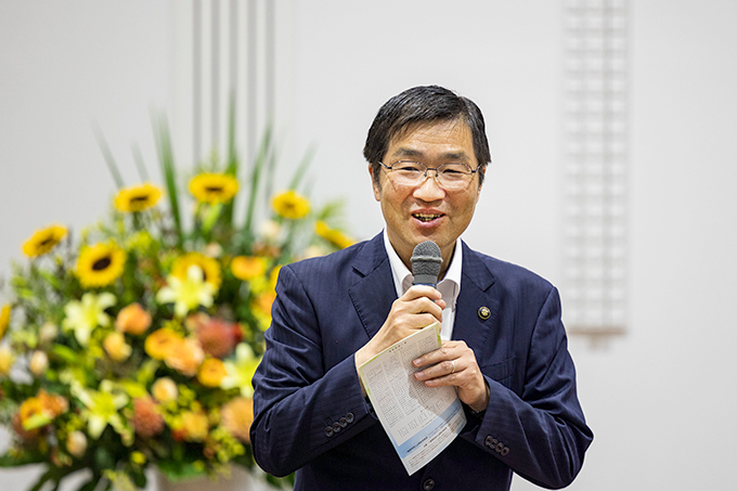 浅見長浜市長もご来場され、長浜市高月町出身でヤンマー創業者である山岡孫吉翁について、また山岡記念財団が長浜市で開催している子供たちへの音楽教育事業に対する御礼や、音楽の大切さについてメッセージをいただきました。
