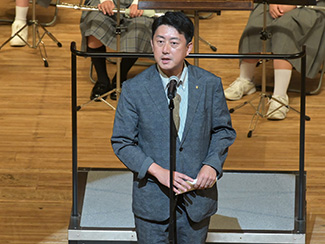 最後には、吹奏楽部生が客席を囲むようにしてアンコール曲「ラデツキー行進曲」を演奏しました。生徒たちの活気あふれる演奏に観客も手拍子で応え、会場は熱気と一体感に包まれたまま終演を迎えました。